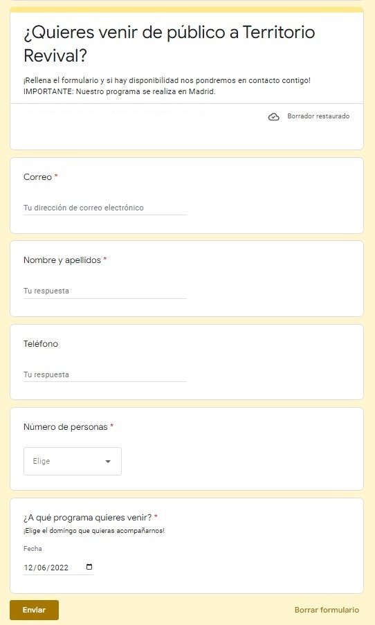 ¿Te gustaría ir de público a Territorio Revival? Apúntate a continuación:
